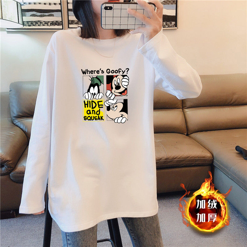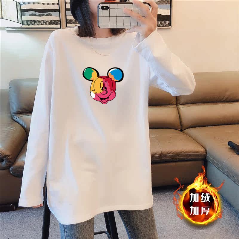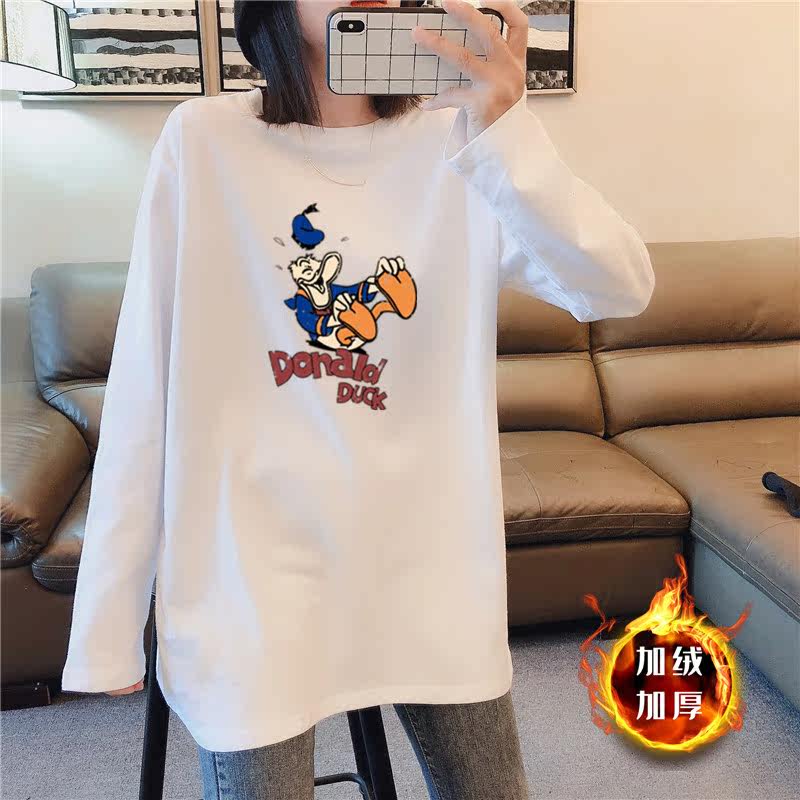 Pregnant Woman Inner Lap Coat Autumn Winter Large Size Loose Inner Lap Collar Mid long version Long sleeves T-shirt plus suede thickened warm jacket