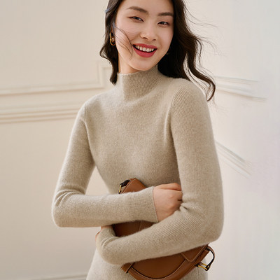 2021 new mountain cashmere sweatshirt semi-high neckline body autumn winter knit bottom cover head pure color stitch sweatshirt warm