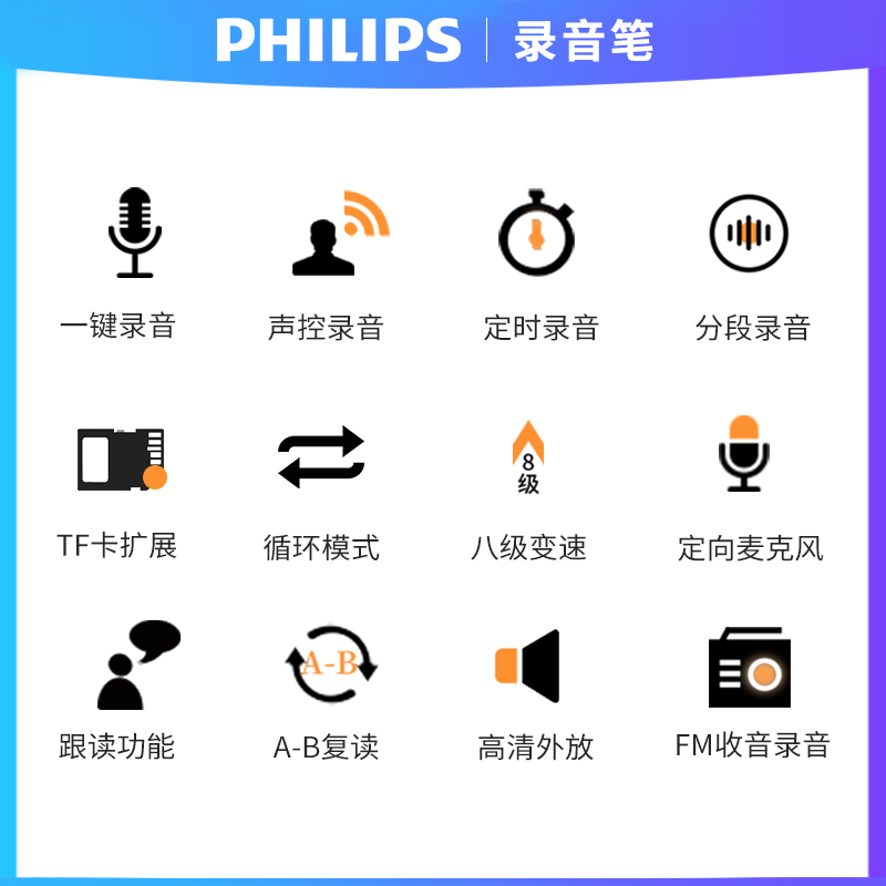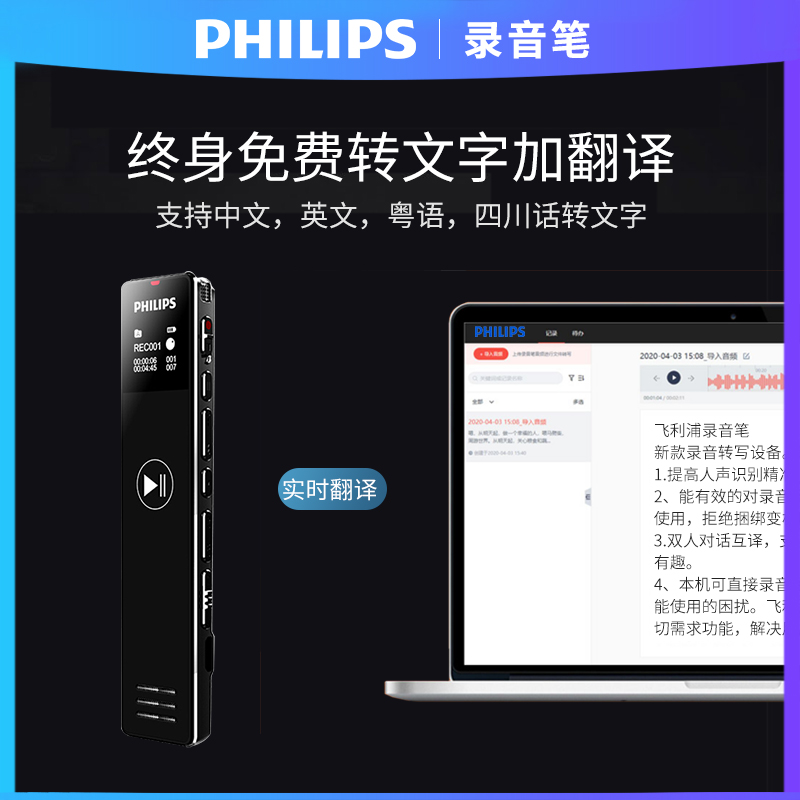 Philips VTR5101 Recording Pen Professional HD Noise Reduction transfer Words with learning growth standby Large capacity