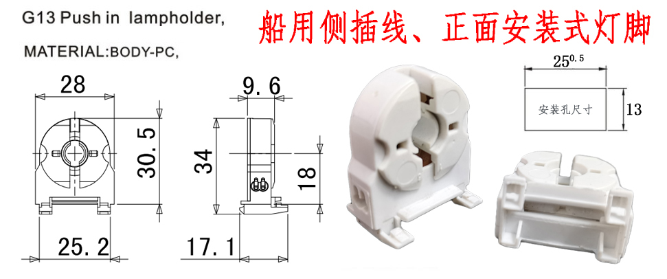 T8 marine side plug - in front card button mounted lamp foot G13 lighthouse corner marine lamp foot