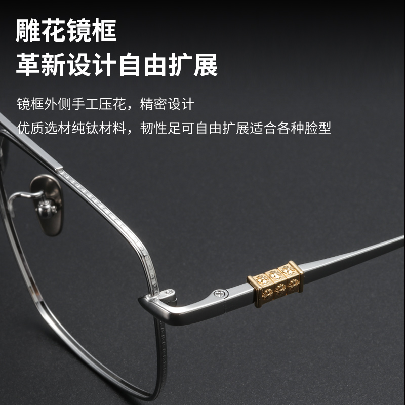 Designer pure titanium double-beam glasses frame men's ultra-large frame ultra-light can be equipped with myopia advanced sense frame Chao Ke Luoxin