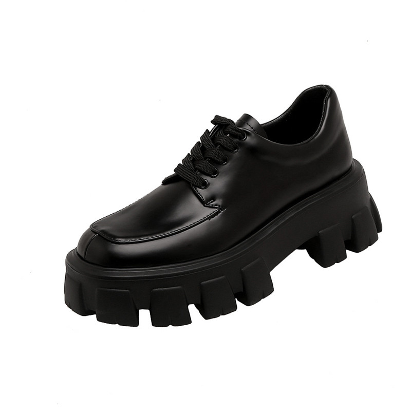 2022 spring Liu Wen same style leather thick-soled loafers women's heightened platform shoes patent leather British small leather shoes with laces