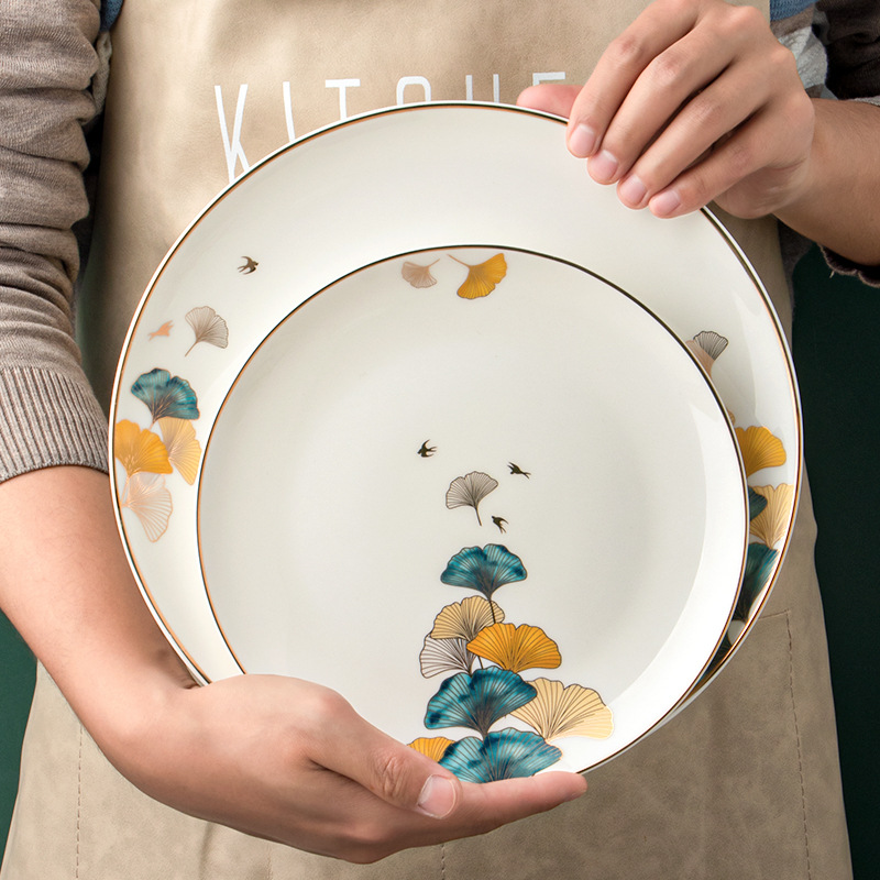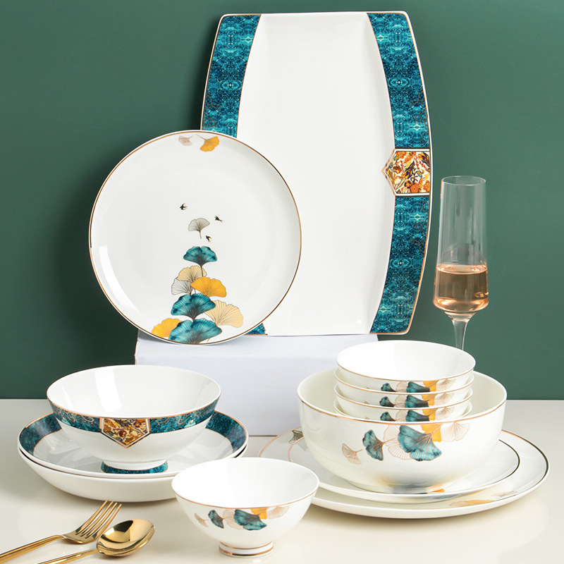 4 5-inch rice bowls 6-inch noodle bowl 7-inch soup bowl 8-inch dinner plate 8-inch lunar CD 8 5-inch origami tray 10-inch lunar CD 12-inch day-style fish dish