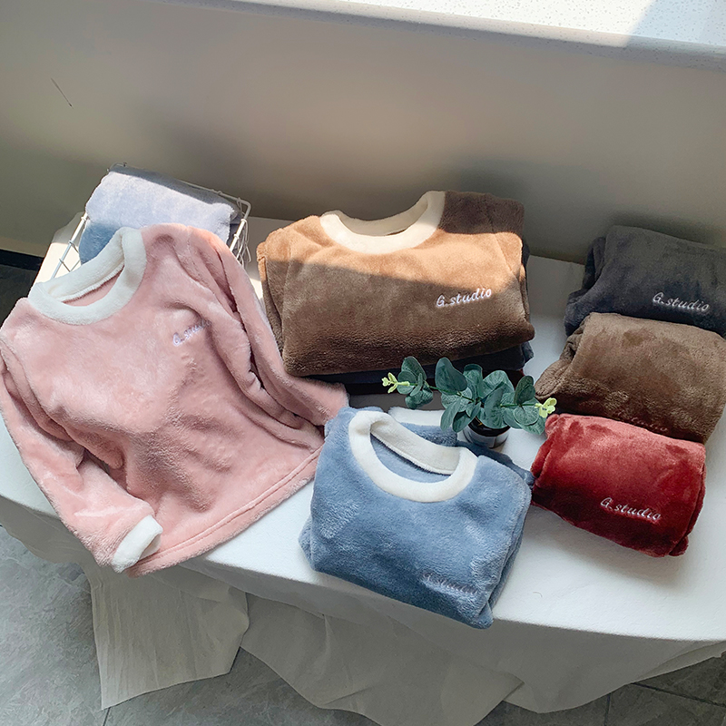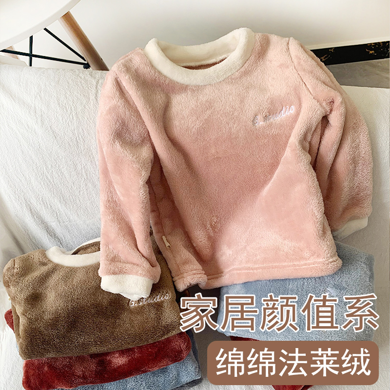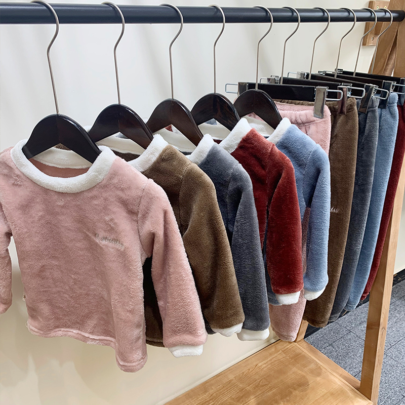 Children's home suit in winter girls warm pants warm autumn and winter suit for boy flannel two-piece set