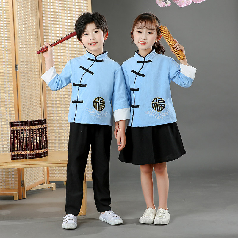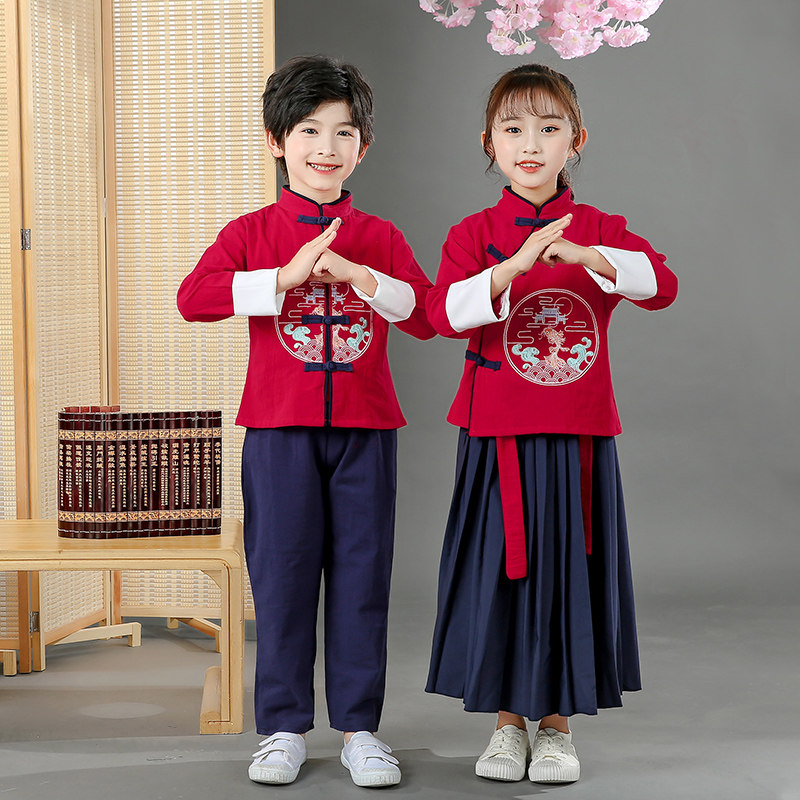 Children's New Year's Day Performance Costume Group Plays the Three Words of Chorus Costumes of the Republic, Poetry Recital of the National School of the Republic