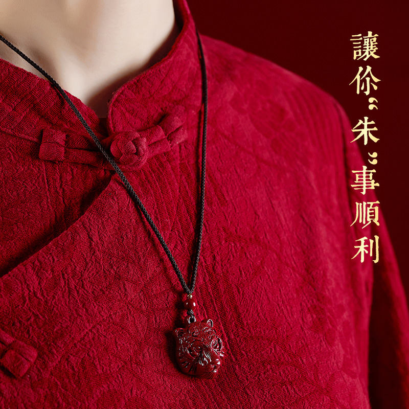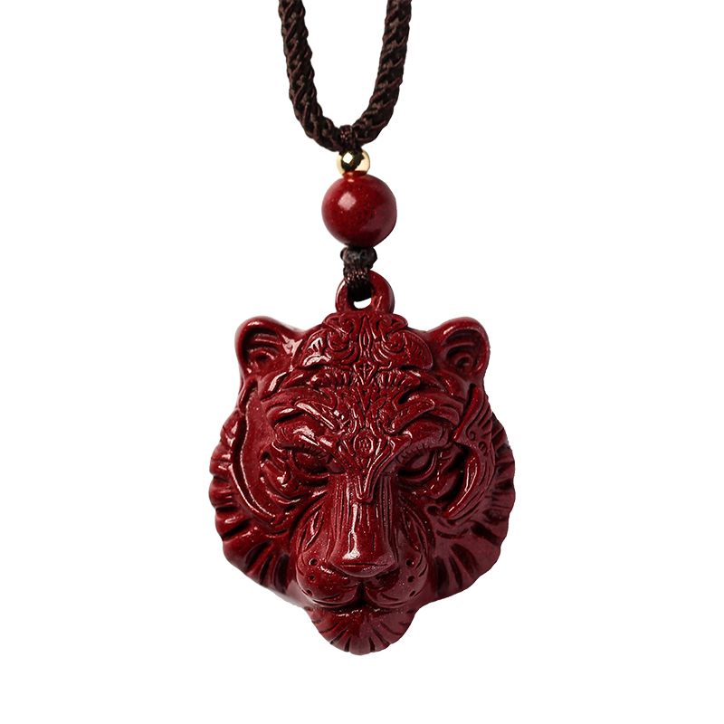 This year is the year of the tiger, natural raw cinnabar pendant, female pendant, tiger head brand amulet necklace, men's jewelry