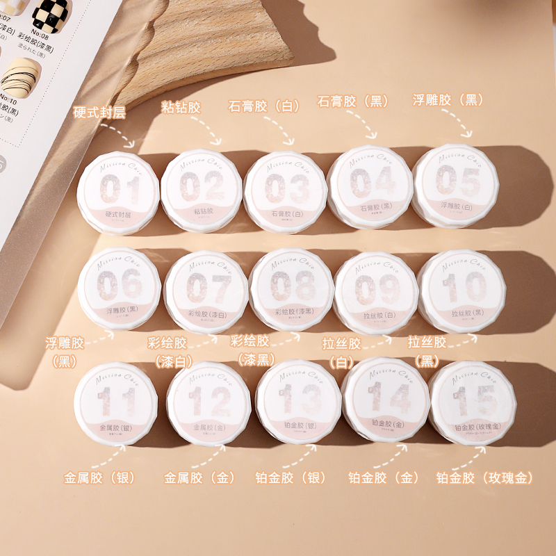Digital treasure box set of 15 color send blank color plate 1#硬式封层2#免洗粘钻胶3#白色 plaster glue 4#黑色 plaster glue 5#白色 relief glue 6#黑色 relief glue 7