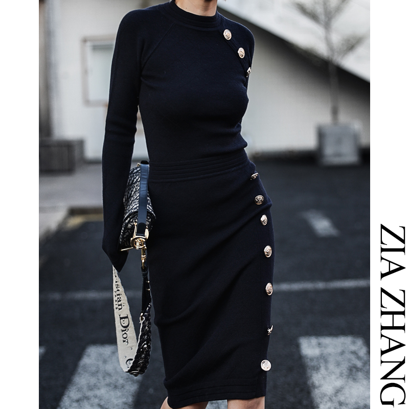Z boss clothes skirt split pat wool small round collar inserted shoulder type T-shirt with long version of half body dress woman