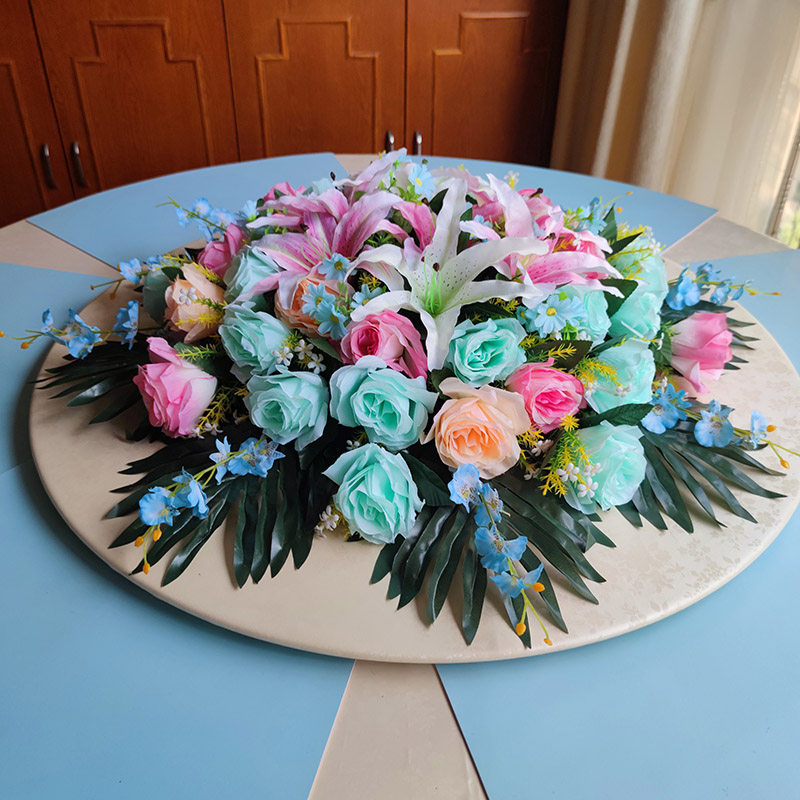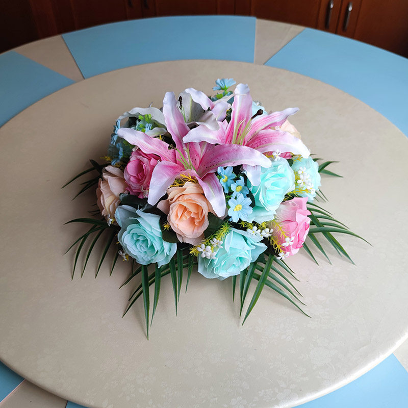 Hotel large round table in the middle of the flower round table flower decoration decoration restaurant table turntable flower simulation plastic fake flower