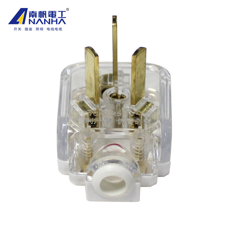 High end plug large conjoint removable copper 2-foot 2-hole power cord plug three-foot 3-phase 3-hole high power 10a16a