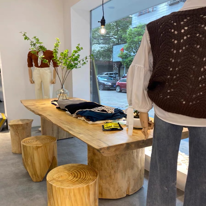 NORDIC SHOP WINDOW MEN'S AND WOMEN'S CLOTHING STORE DISPLAY TABLE MIDDLE ISLAND RUNNING WATER TABLE SOLID WOOD TEA TABLE LOG SOLID TABLE PLACEMENT DISPLAY TABLE