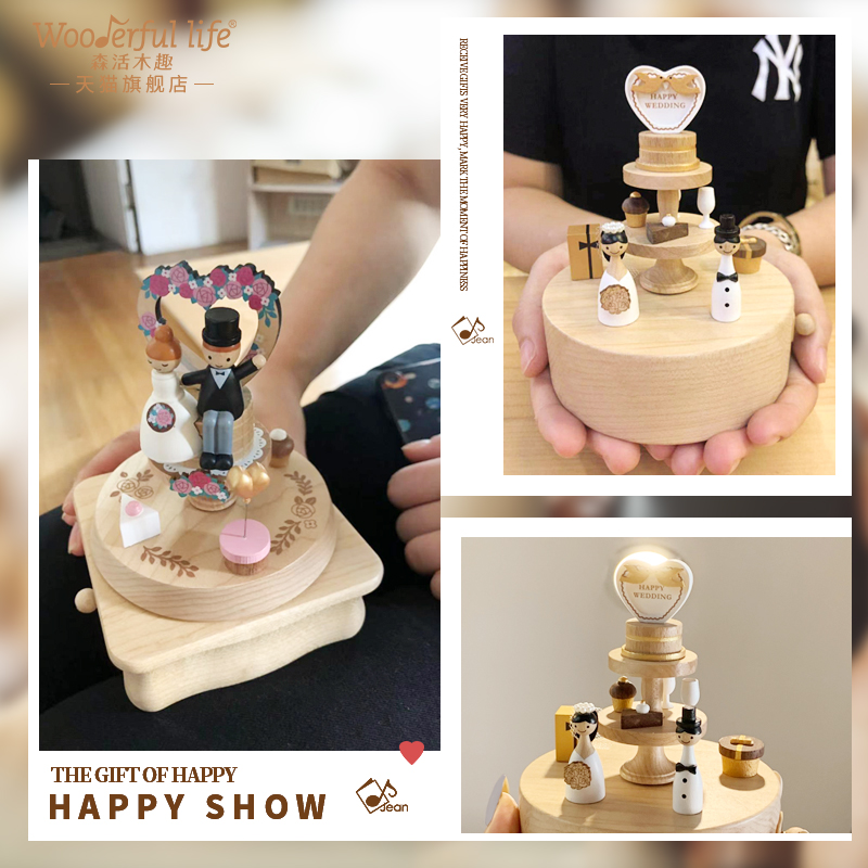 Sen Live Wooden Music Box Wife Birthday Eighth Out Box Bride Gift Gift to New People