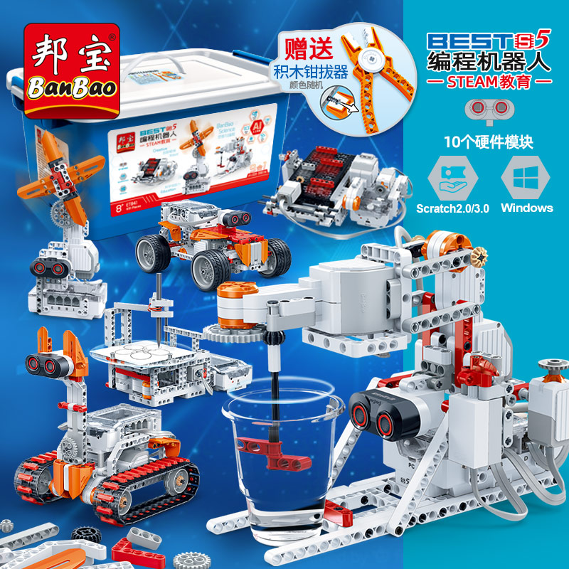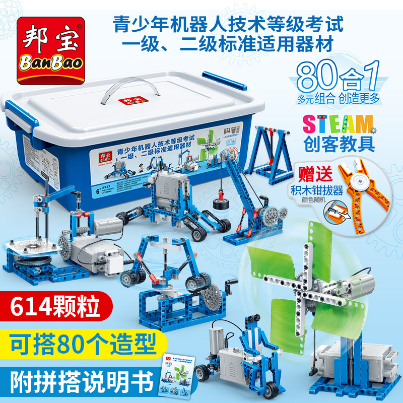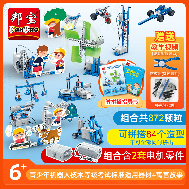 Bangbao 6932 programming block mechanical gear power robot science teaching electric spelling toy birthday present