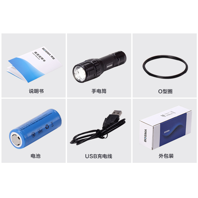 Bocrown (DFU28 flashlight rechargeable) intense light metal lighting flashlight LED riding equipment Far-shot-Taobao