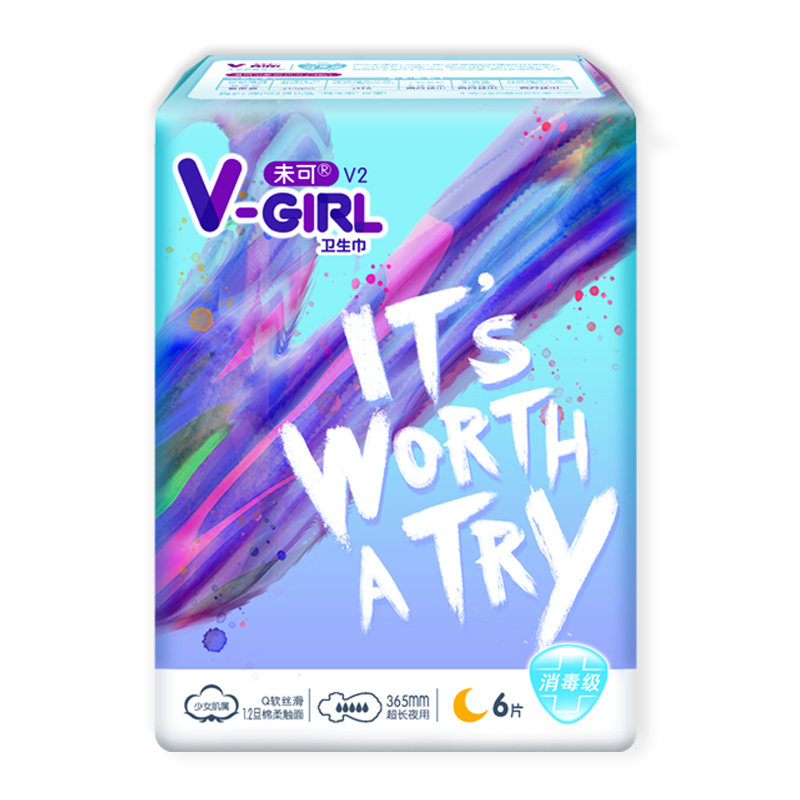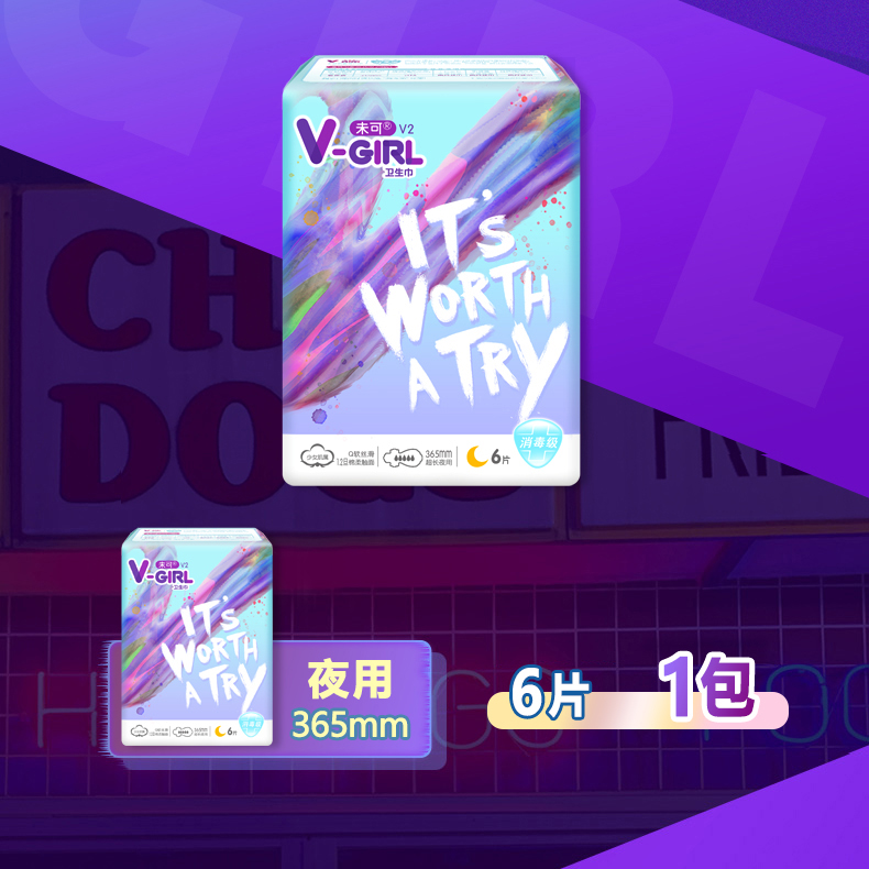 V-GIRL Unclean and sanitary cotton night with 365mm * 6 pieces of cotton soft and breathable pro-skin girl student aunt