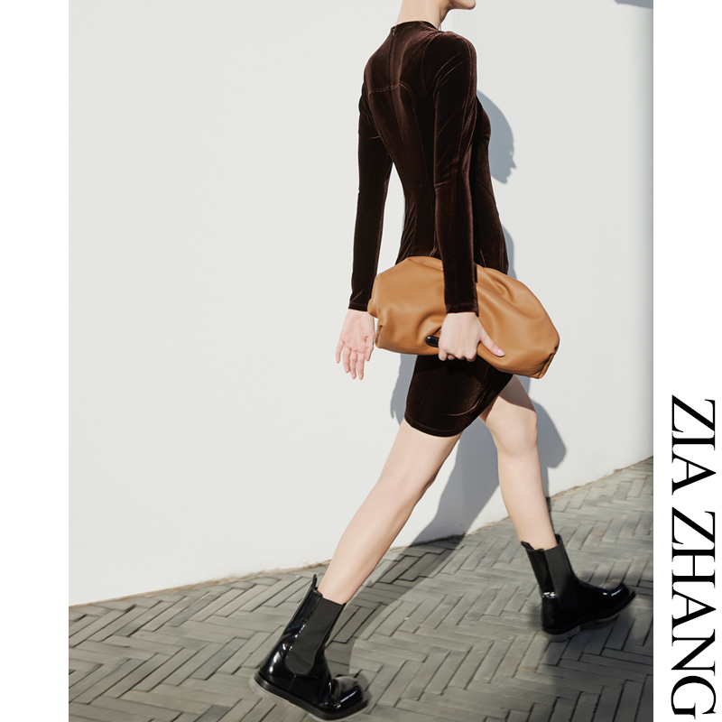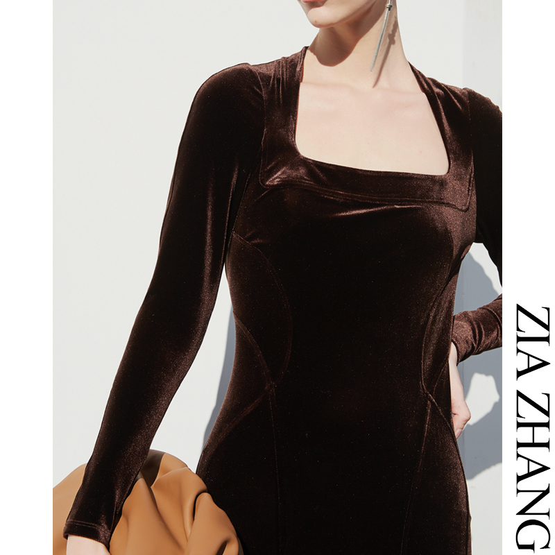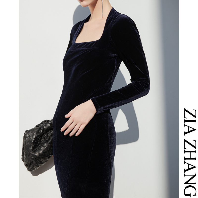 Z Boss S Type Tailoring Triangle Collar Repair Neck Velvet Dress Horseshoe Sleeves Short buns Hip Dress
