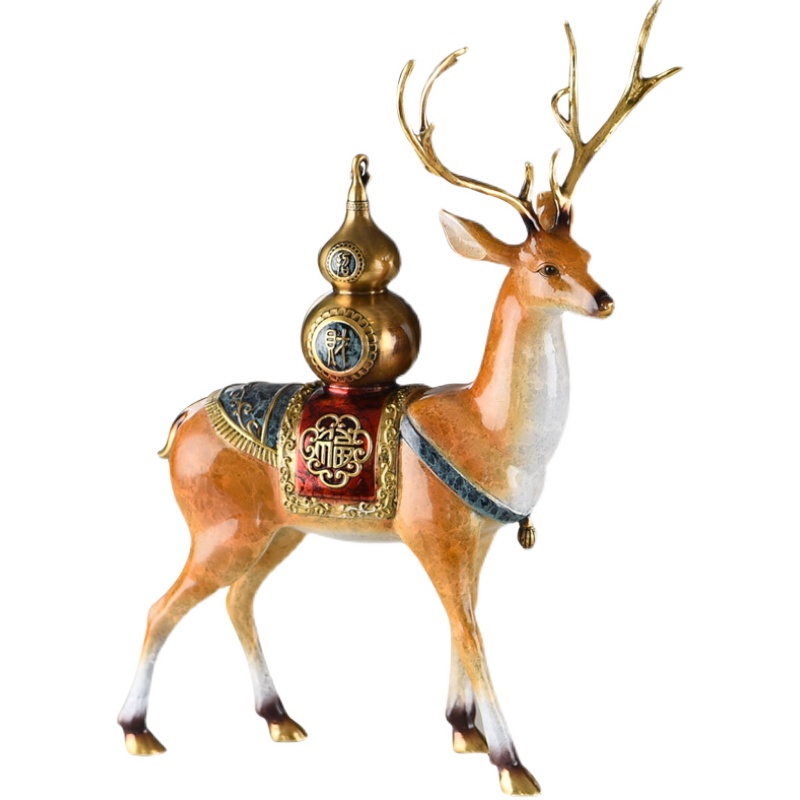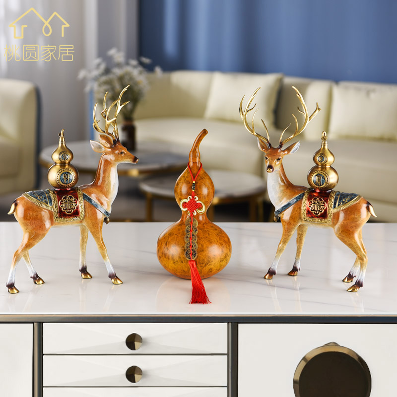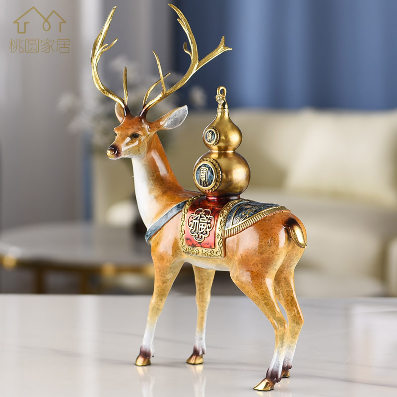 Fulu Shuangquan Lucky Copper Deer Ornament Living Room TV Cabinet Entrance Wine Cabinet Creative Design Home Decoration Decoration
