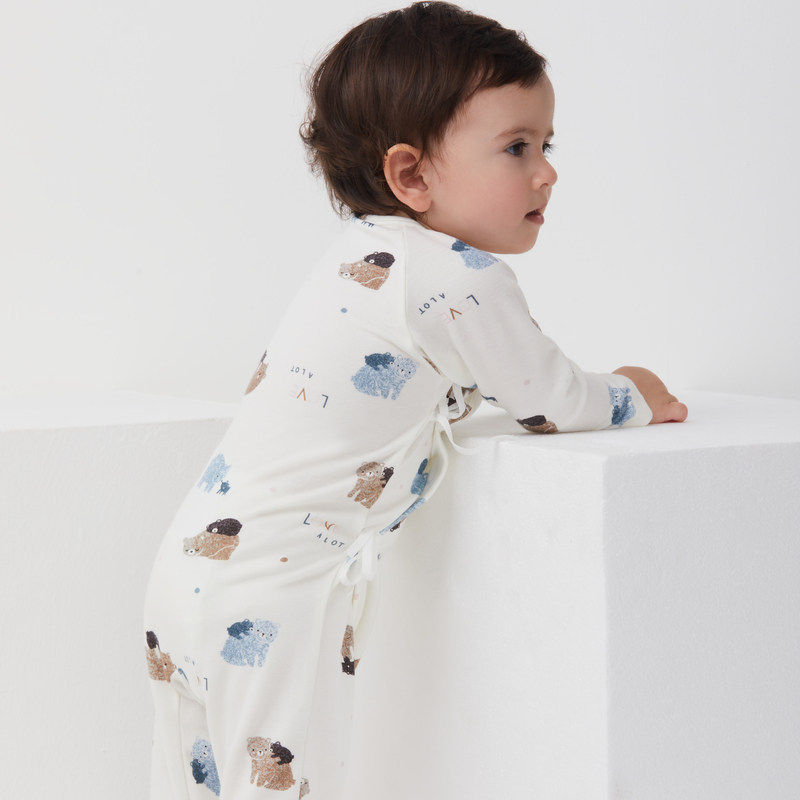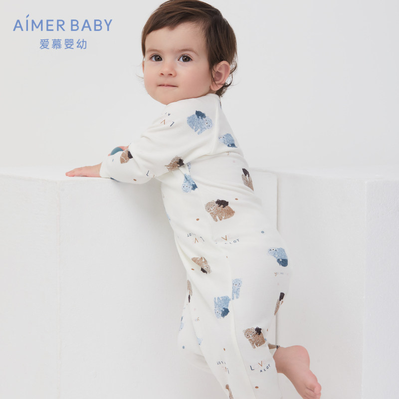 Aimer BabyAIMER baby pro-sleep neutral baby tether cord long sleeves scrawling clothes AB3755991