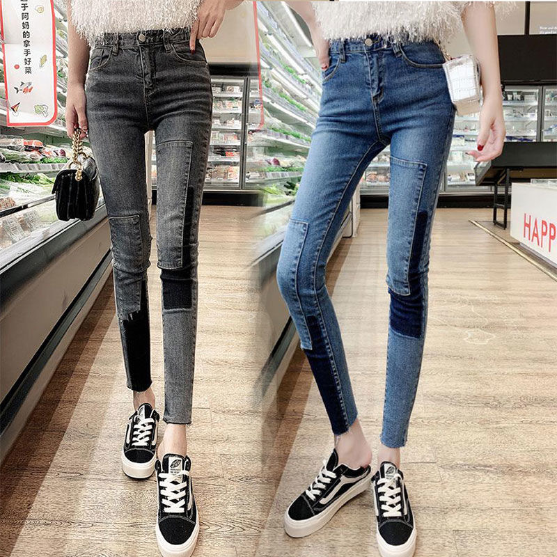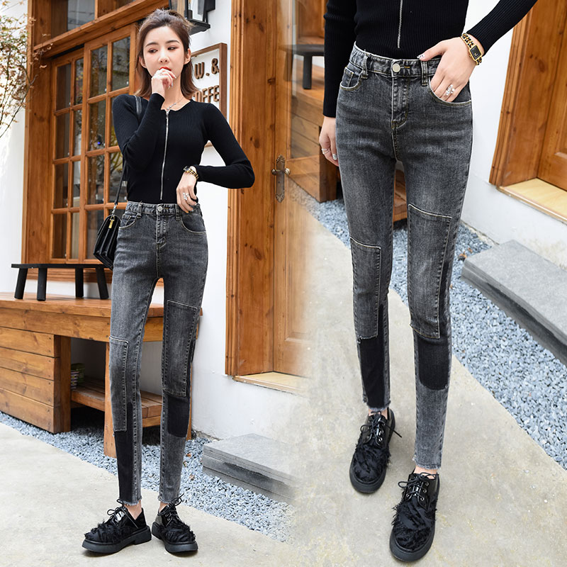 Net Red Tobacco Grey Jeans Lady Autumn Winter New Small Taller slim fit skinny pencil pants small foot 90% pants