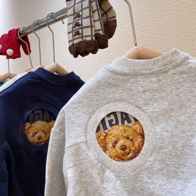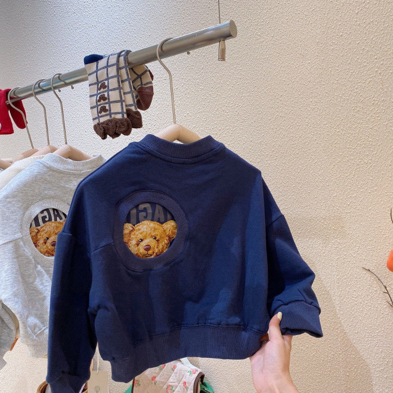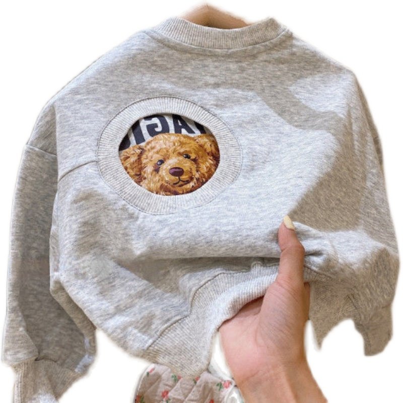 Girls' thick T-shirt spring and autumn 2021 new Korean version of the Western style pullover bear bear loose casual children's baby early autumn top