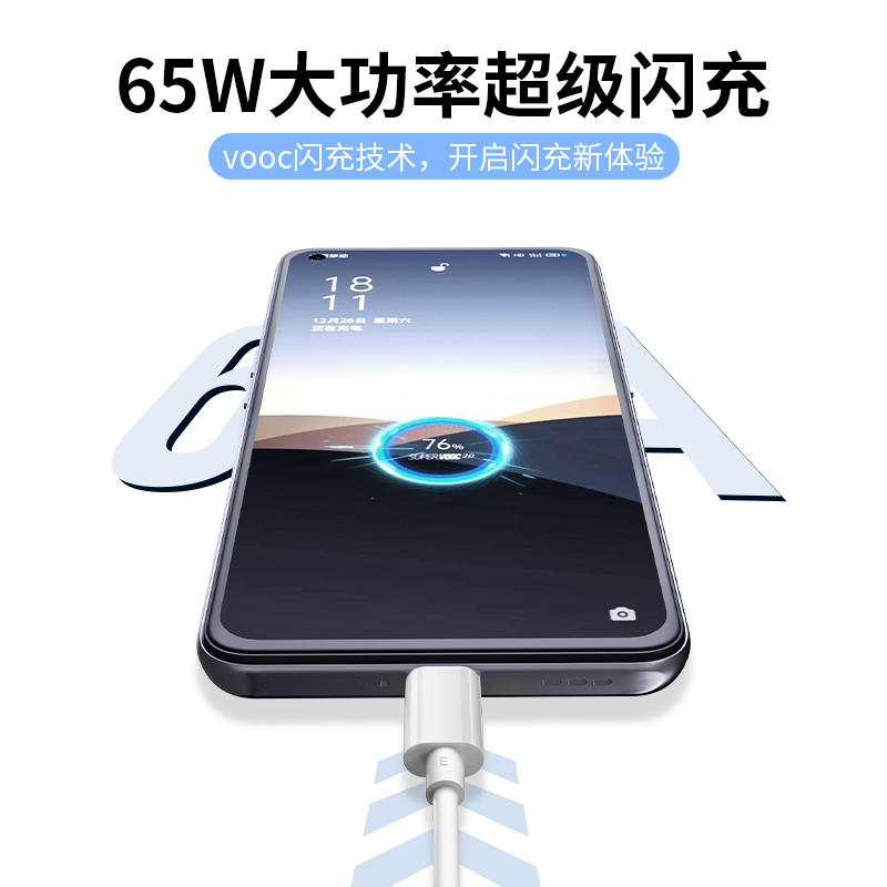 Applicable oppo Reno4 data line 65W charger 5 super flash charge Pro Ace2 FindX2 FindX2 k7 lengthened 2 m r17 X3 Quick charge typ