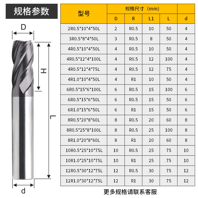 45 degree tungsten steel round nose milling cutter 4-blade carbide bull nose milling cutter CNC CNC machining center R angle end mill