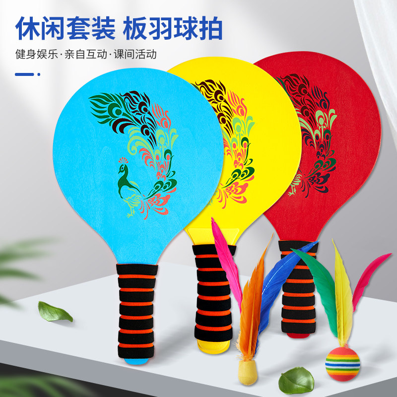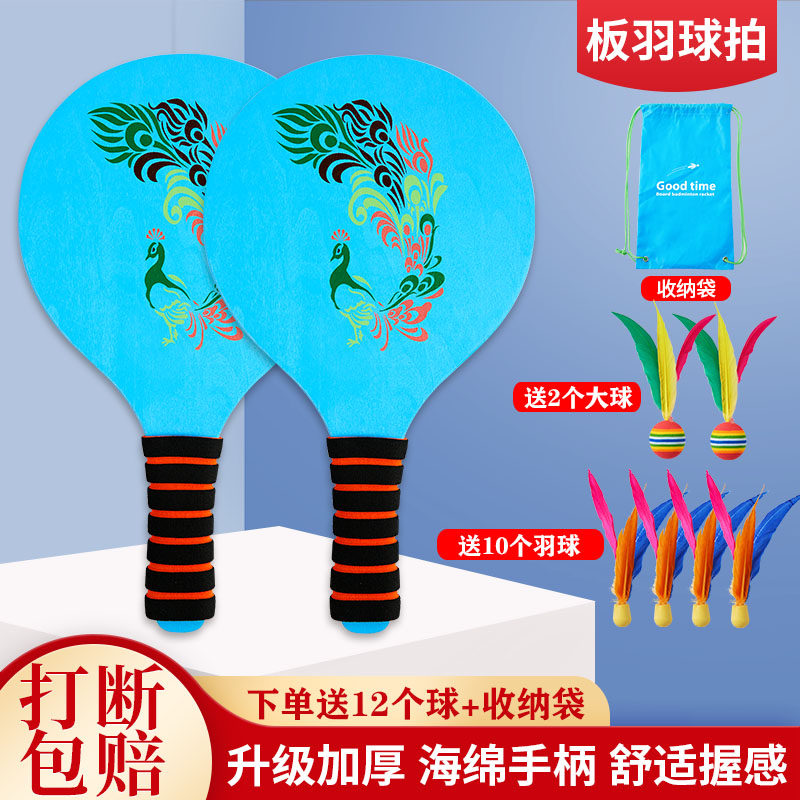 New Thickened Solid Wood Plate Plume Bat Peacock Board Plume Ball Suit Indoor Children Sports Fitness Send 12 Ball Packs
