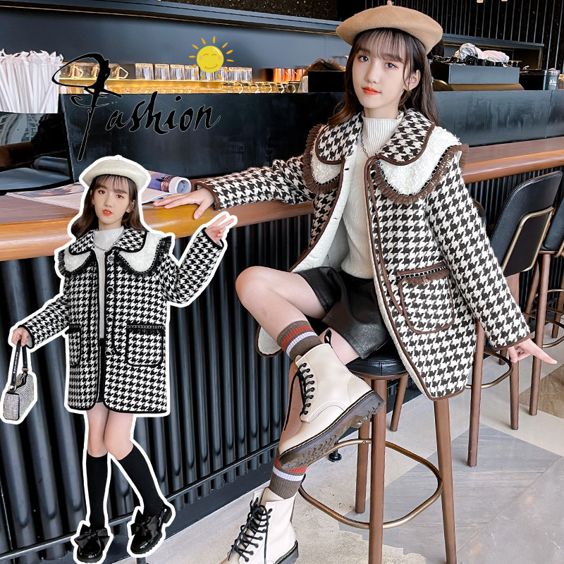 Girls with a thicker hair coat in spring and autumn dress 2022 new girls Yang Yang Yang Fashion medium and long plate coat