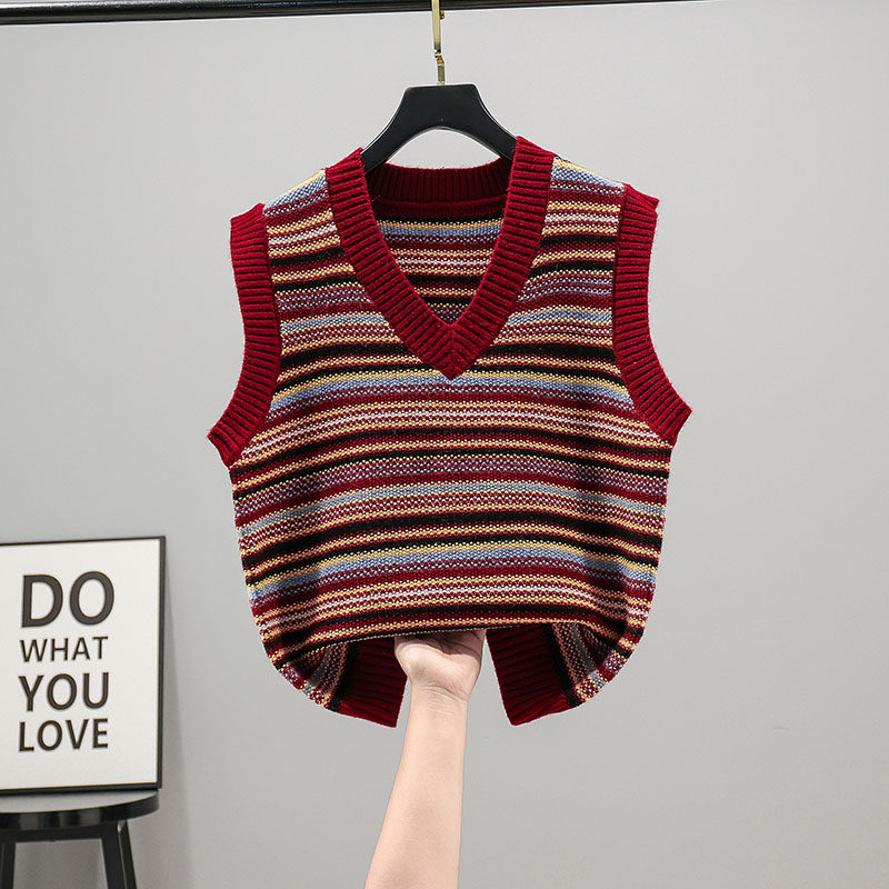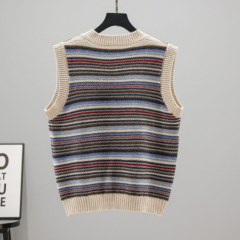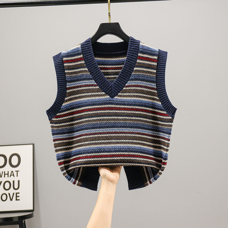 Striped Sleeveless Knitted Sweatshirt Waistcoat Spring Autumn 2021 New Academy Wind Outside Hitchhiking Vest Kan Shoulder jacket