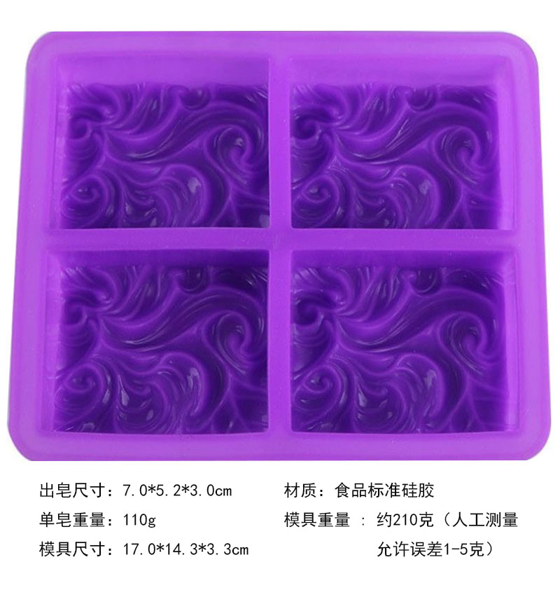 Handmade soap silicone wave pattern soap silicone mold rectangular soap mold quadruple spray soap silicone mold