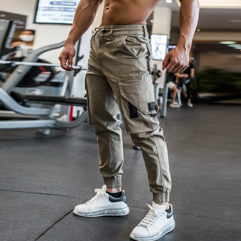 Iron wolf sports pants men's autumn and winter loose tooling large pocket elastic breathable training fitness casual trousers