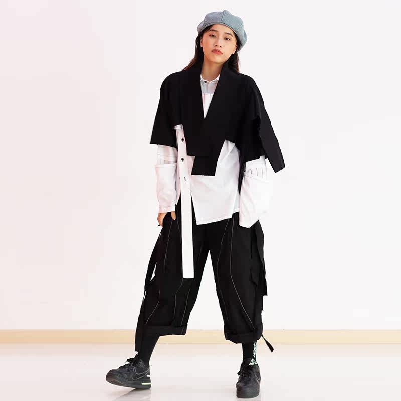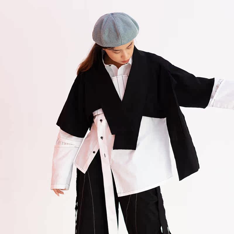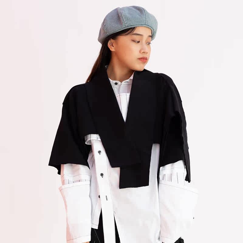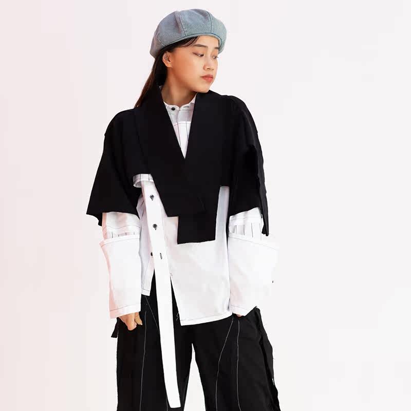 TOXIC small crowddesigner street dance tide V collar single piece deconstructs splicing cracked irregular pure color horse beetle