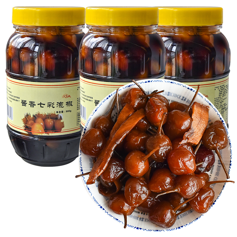 Sauce aromas 7-colored peppers 900g * 3 bottles of round bubble pretzels salted peppers Lower congee Porridge Small Dish Five Colorful Peppers Guangxi Seven Colorful Peppers
