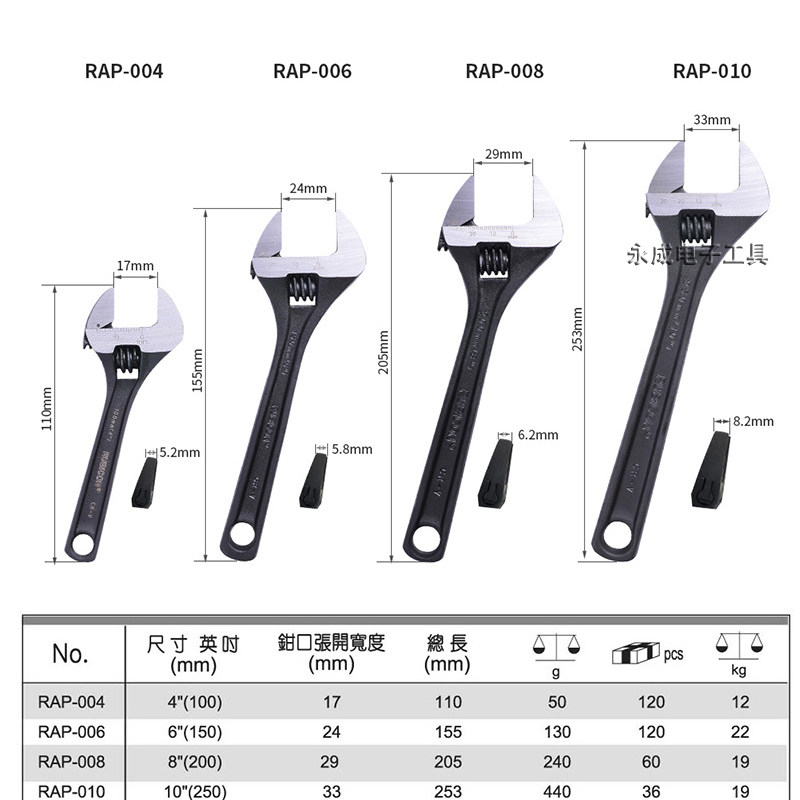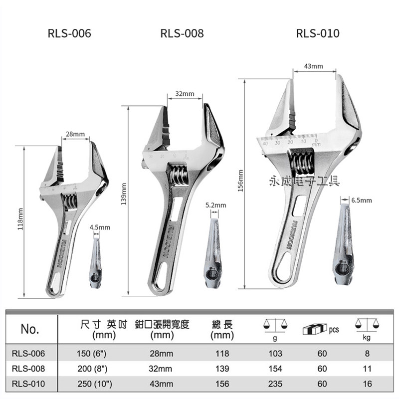 RLS-006 short handle large opening 6 inch RLS-008 short handle large opening 8 inch RLS-010 short handle large opening 10 inch RAP-004 standard type 4 inch 10