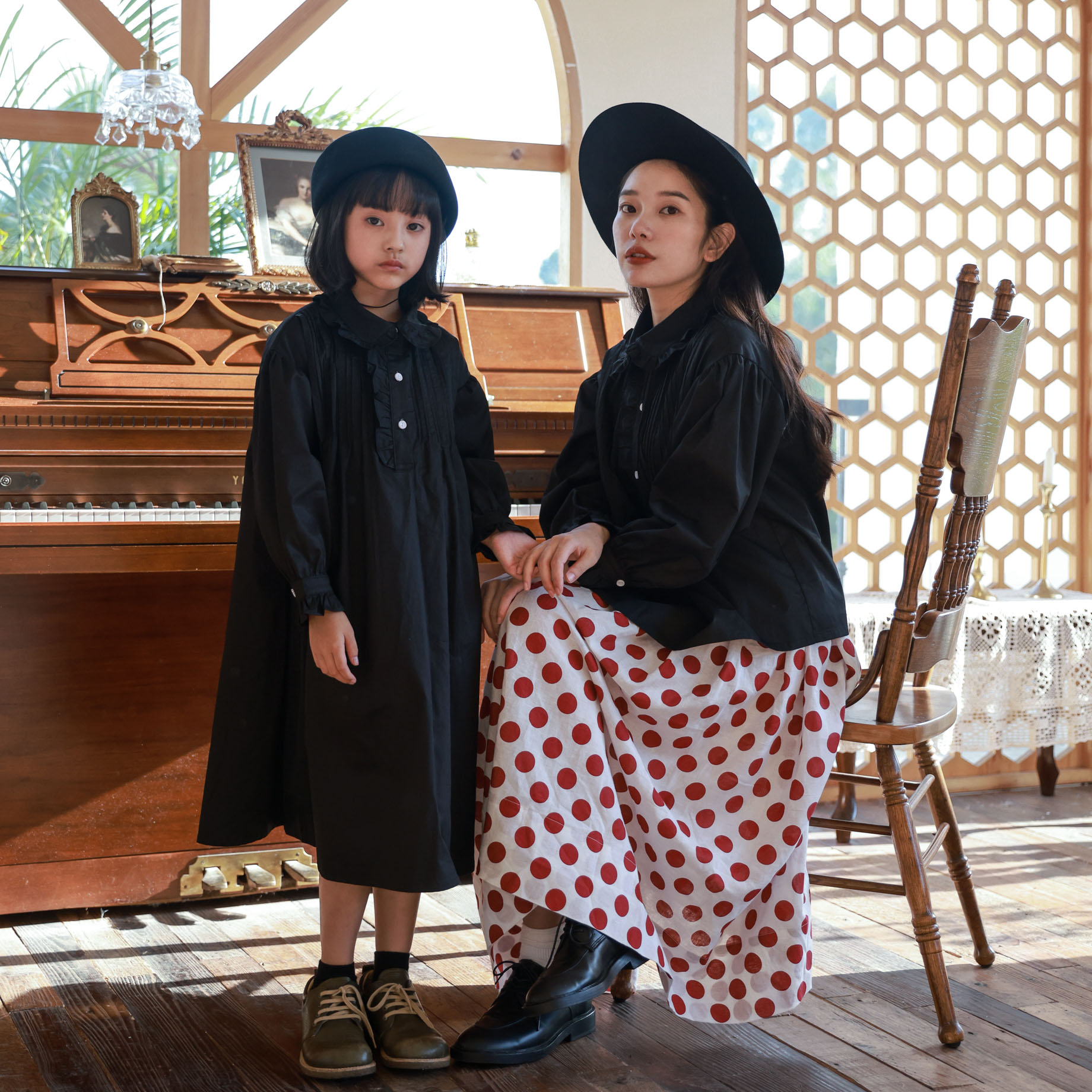 the tree Japanese lace pleated cotton shirt dress women's clothing girls' clothing parent-child long-sleeved spring and autumn