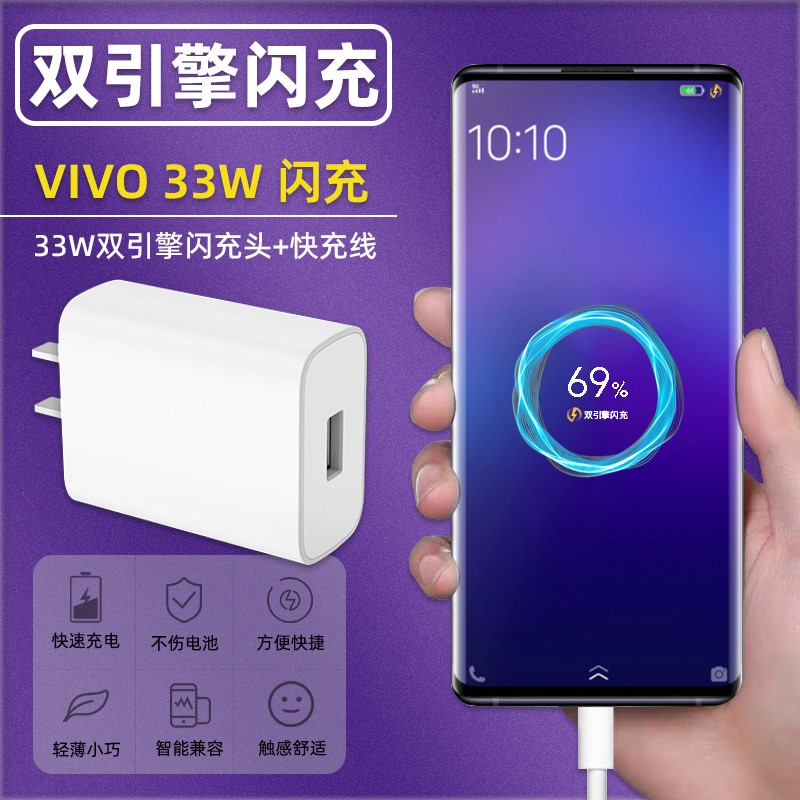 Apply vivoX60 charger head 33W twin engine flash VIVO x60pro mobile phone charging plug 5G Phantom Fantasy Charging Line data