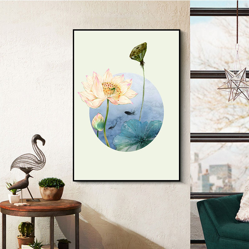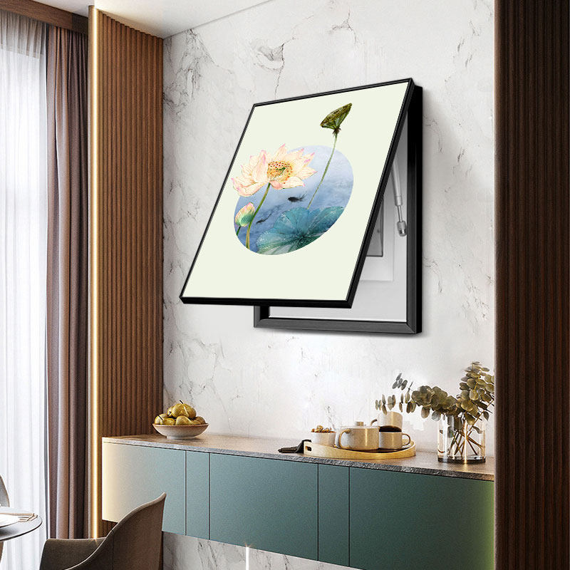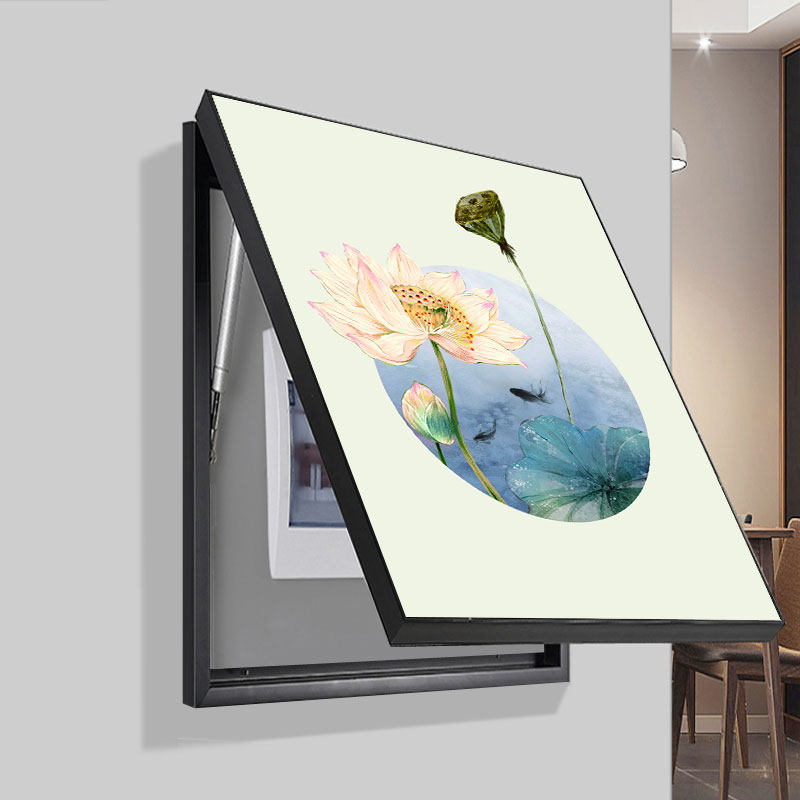 New Chinese-style electric meter box decoration painting hand-painted oil painting into the family's house Dining Hall push-pull hanging painting lotus flower customizable size