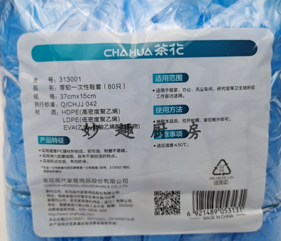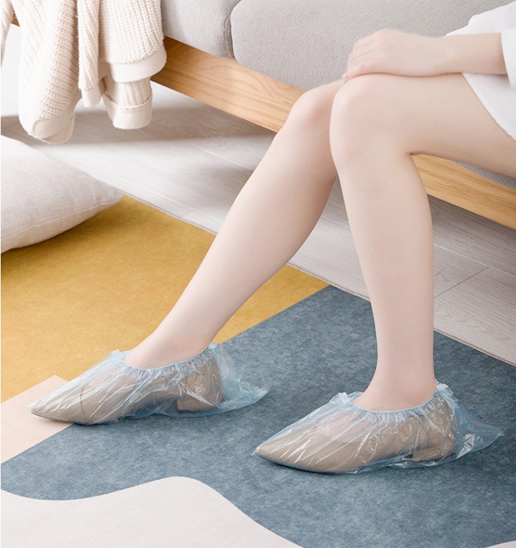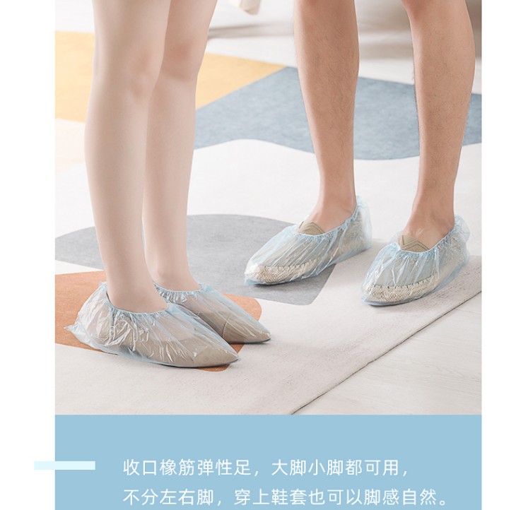 Tea flower 80 thick and tough disposable PE film waterproof and dust-proof isolated shoe cover Home room indoor foot sleeve 313001