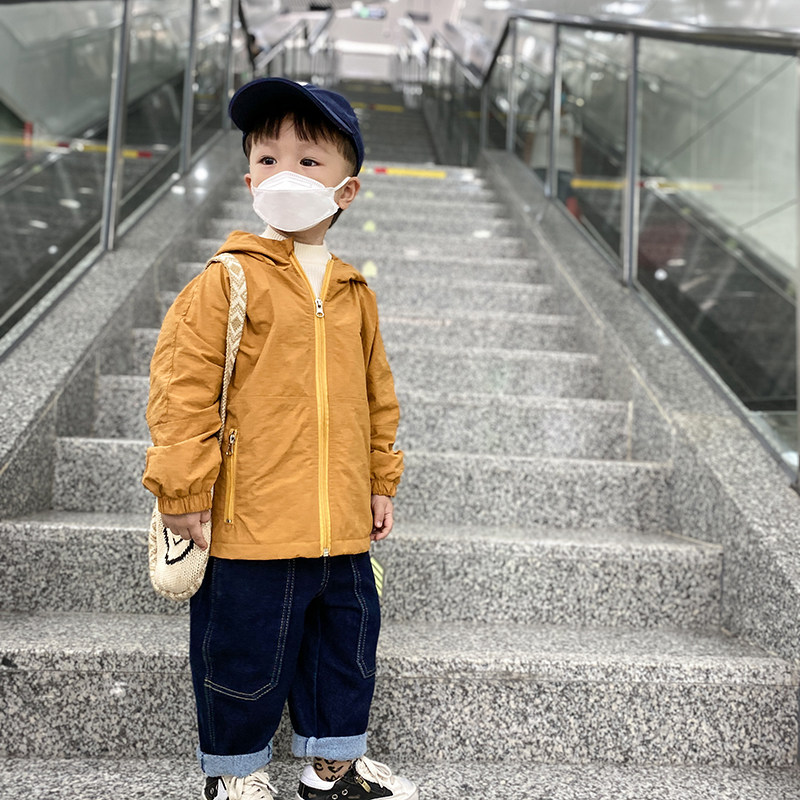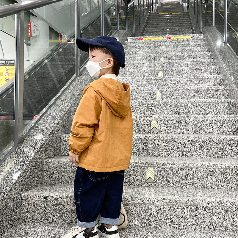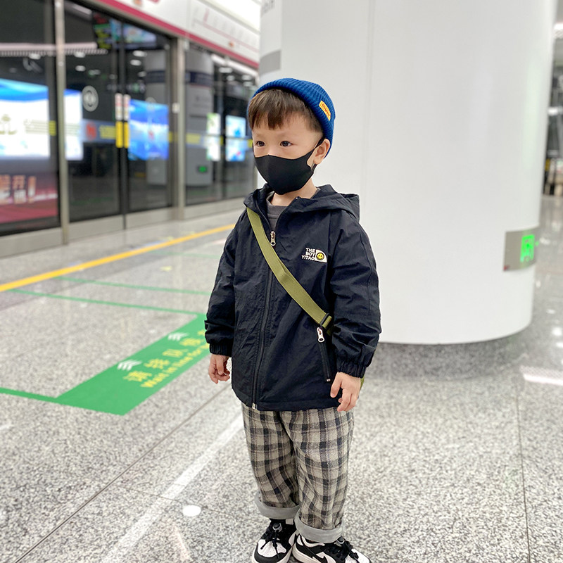 Boy coat spring and autumn Korean version laughs face Westerbots 2021 new children overalls jacket children gush windproof clothes