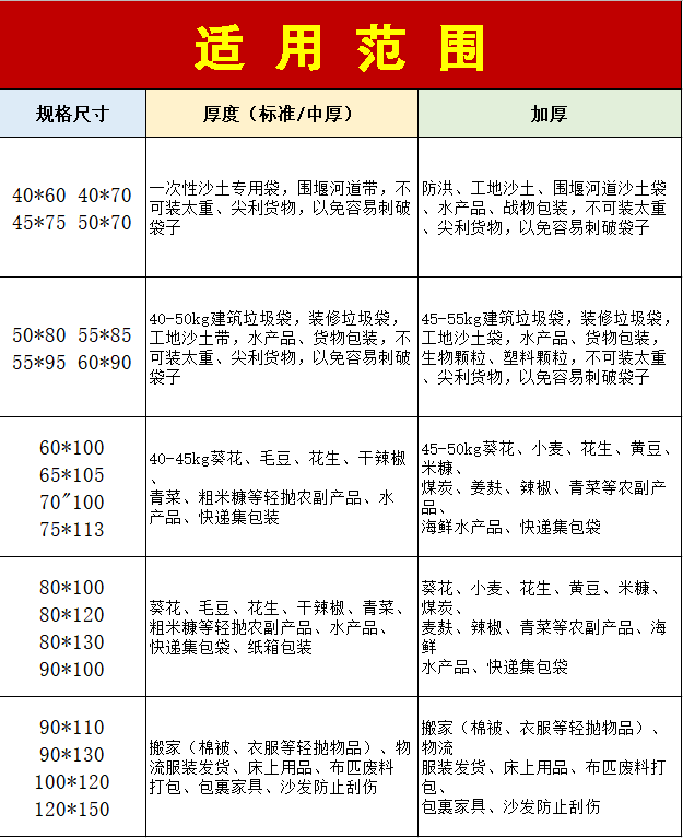 30*45 (100 pieces) 35*60 (100 pieces) 40*62 (100 pieces) 45*77 (100 pieces) 50*82 (100 pieces) 50*90