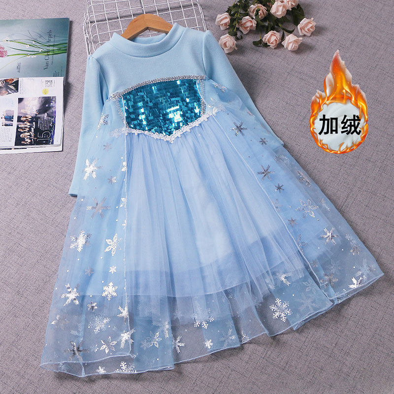 Aisha Frozen Aisha Princess skirt spring and autumn plus velvet female treasure dress long-sleeved children's girl cotton