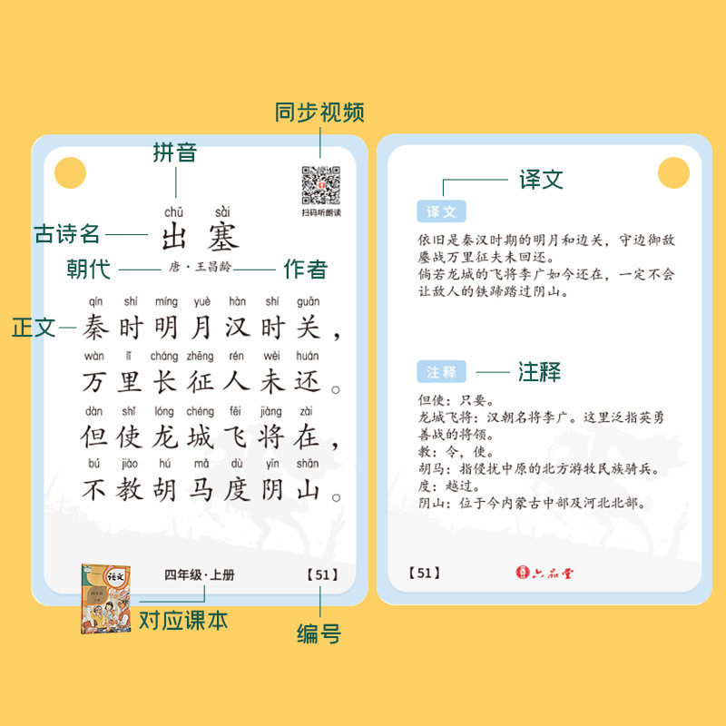 Primary school students Ancient Poetry Card 1 122 3456th grade language synchronization textbook children must be portable