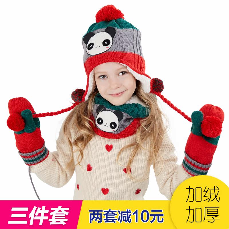 Panda children's hat scarf gloves three-piece suit baby autumn and winter hot clothes plush ear protection girl