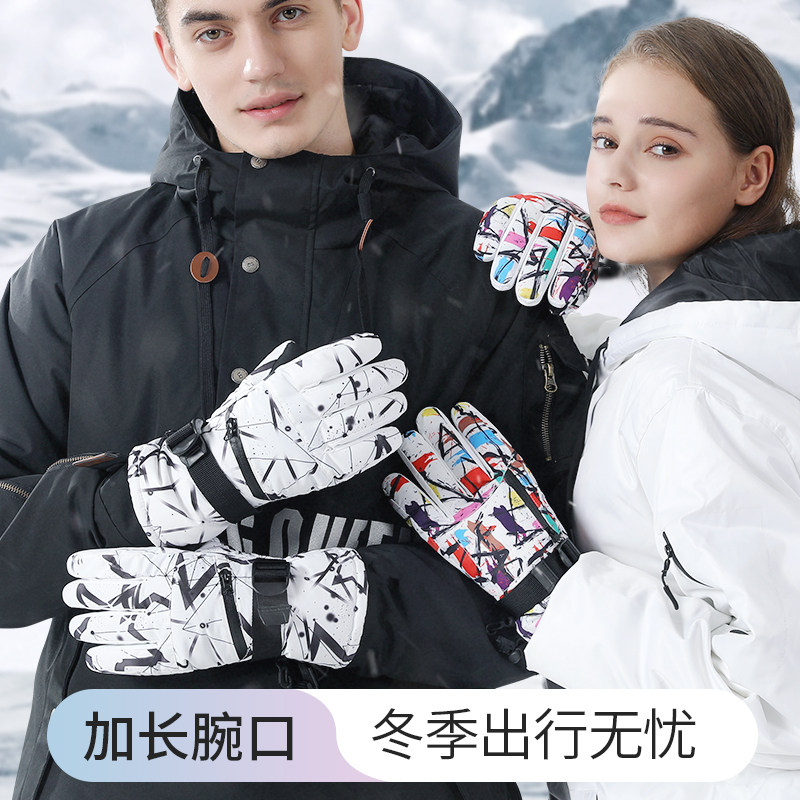 Ski Gloves Autumn winter Men and women Outdoor Riding Plus Suede Warm Non-slip Waterproof Pull Chain Pocket Touch Screen Gloves
