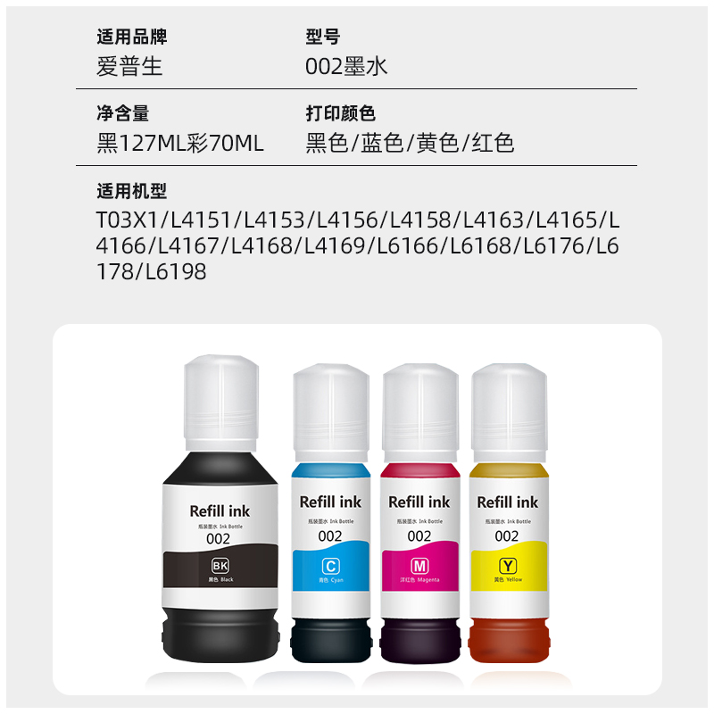 Suitable for Epson 002 ink T03X1 L4151 4153 4156 4158 4163 4165 L4166