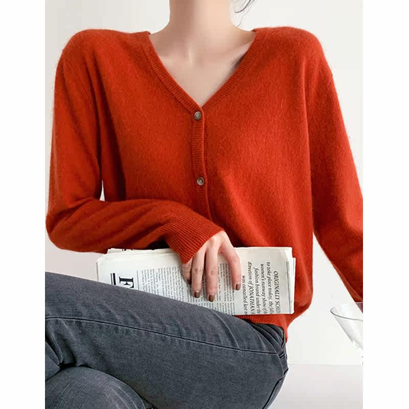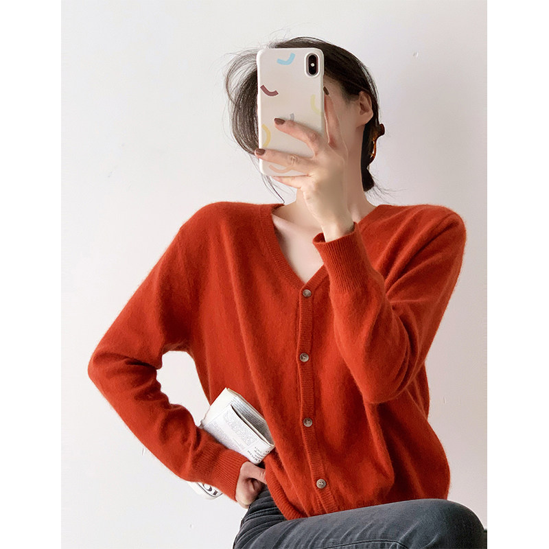 HICECI fried chicken soft waxy white orange red 2023 winter new sweater women knitted cardigan V-neck loose long-sleeved