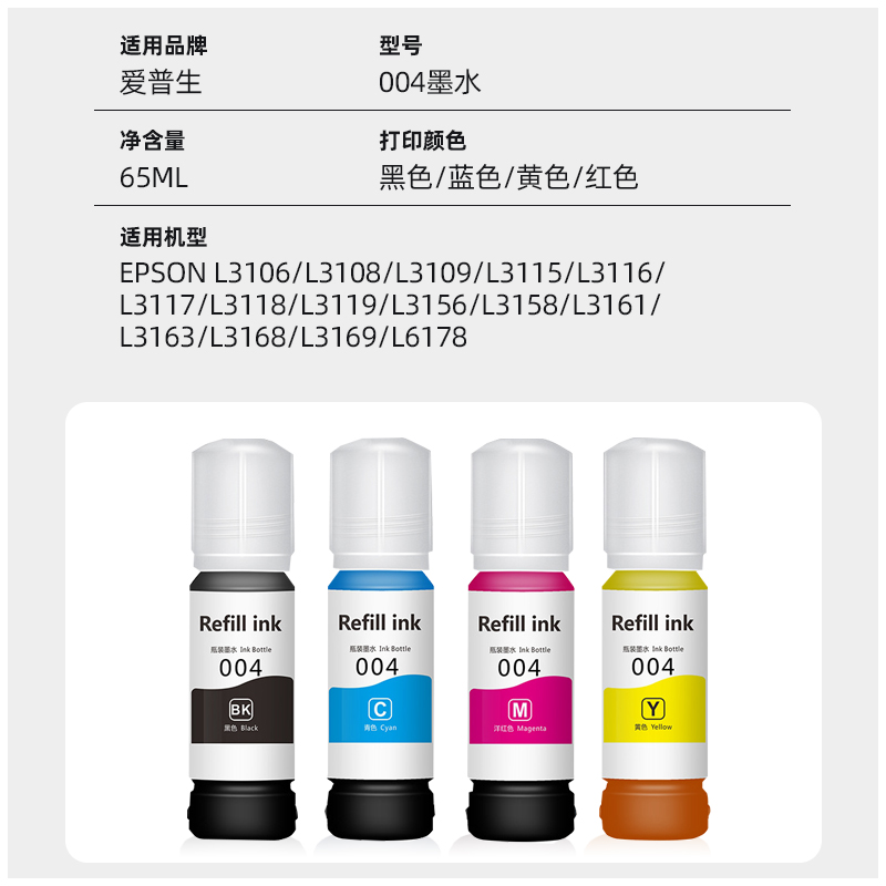 Suitable for Epson 004 color 3106 3108 3109 3115 3116 3117 3118 3119 ink