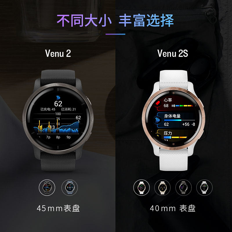 Venu 2S Rose Gold Venu 2S Champagne Golden Venu 2S Mystery Grey Venu 2S Fog Grey Venu 2 Dark Shadows Black Venu 2 Phantom Silver Blue