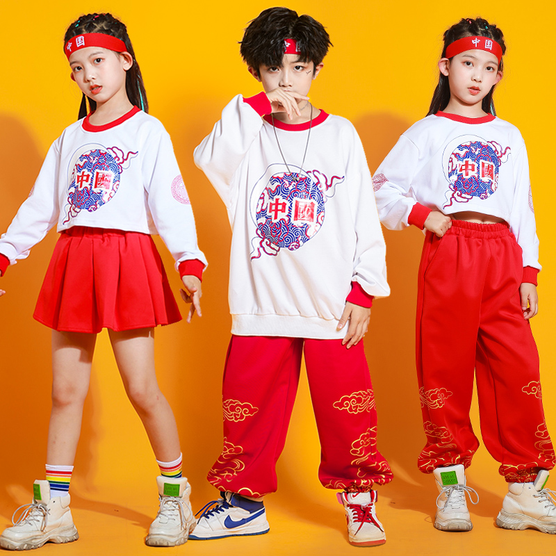 Children's cheerleading costumes 61 hip-hop festive Chinese style group class uniforms primary school sports clothing spring