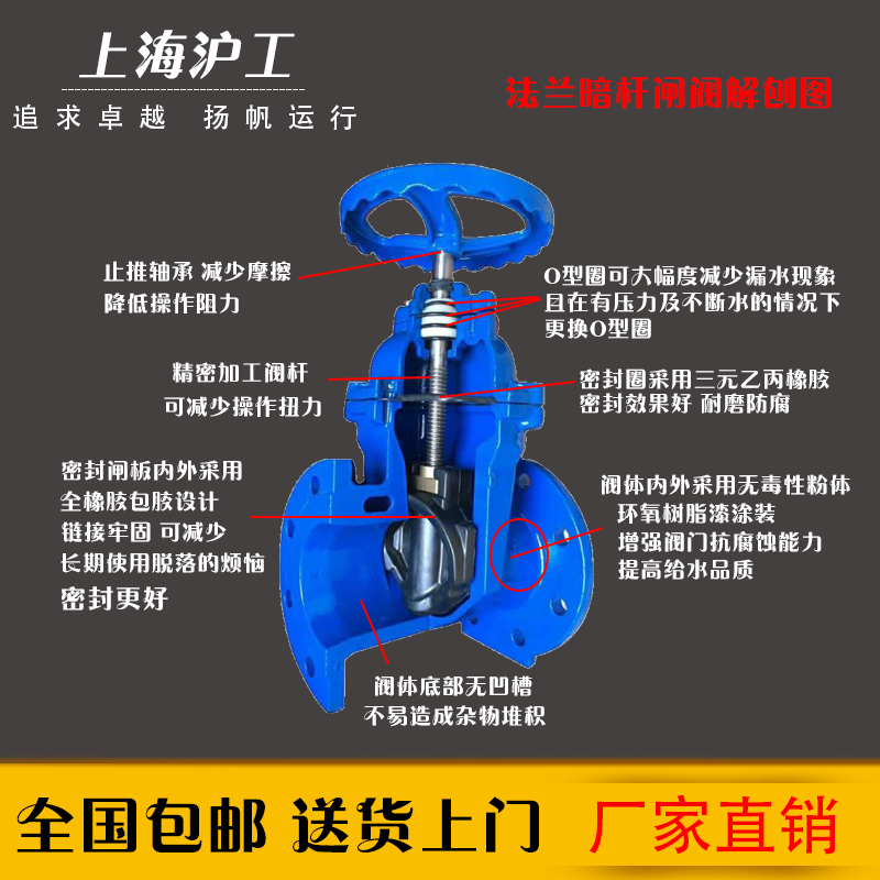 Shanghai Hugong soft seal flange dark rod gate valve Z45X tap water switch valve fire DN100 copper core valve